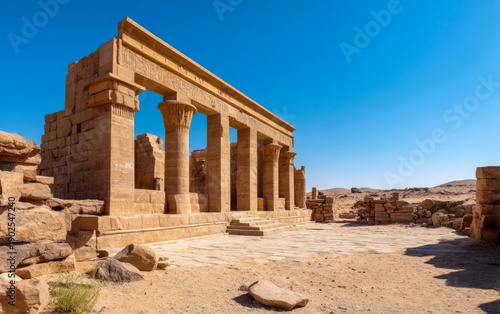 Fototapeta premium Ancient Ruins in a Desolate Landscape Under a Clear Blue Sky