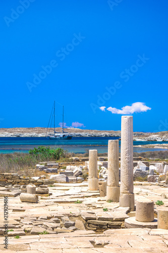 Fototapeta premium Ancient ruins in the island of Delos in Cyclades, one of the most important...