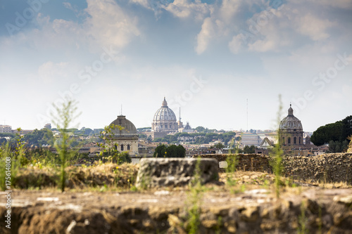 Obraz premium ancient ruins on Palatine Hill against St. Peter's Basilica, Rome, Italy, Europe