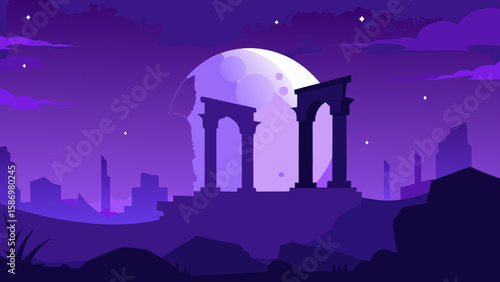 Fototapeta premium Ancient Ruins Silhouetted Against Sunset Background Scene for Digital Art