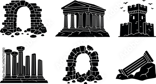 © DesignVectX, Fototapeta premium Ancient ruins with columns arches and castle tower