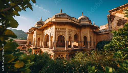 Fototapeta premium Ancient sandstone monument, Hindu tomb decoration, spirituality generated by AI