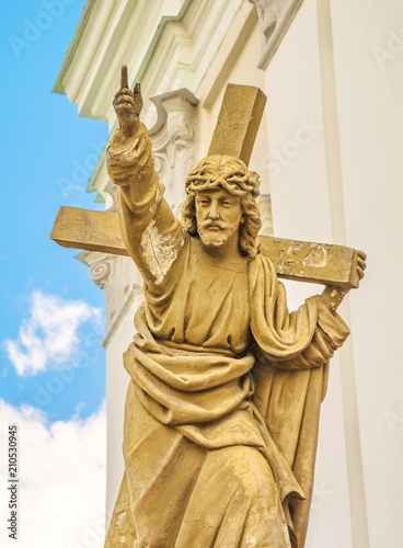 Fototapeta premium ancient sculpture depicts Jesus Christ carrying his cross