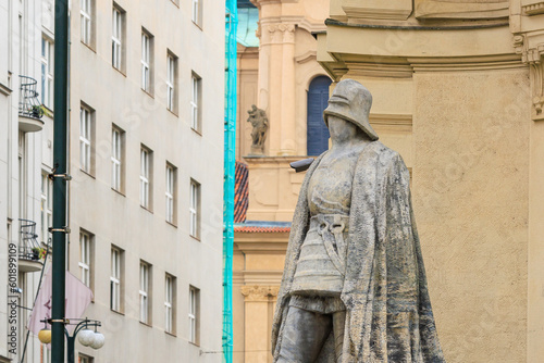 Fototapeta premium Ancient sculptures in the architecture of the city. Historical and cultural...