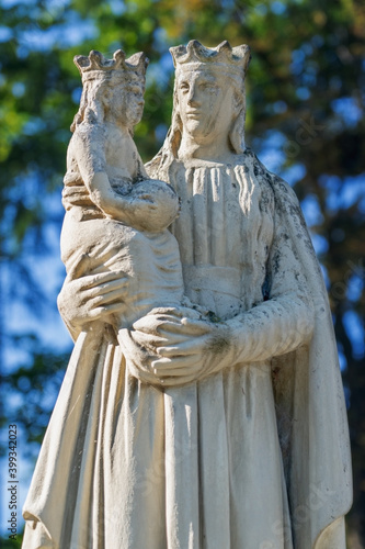Fototapeta premium Ancient statue of Virgin Mary and baby Jesus Christ