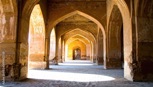 © mas, Naklejka premium Ancient Stone Arch Corridor With Warm Sand Floor