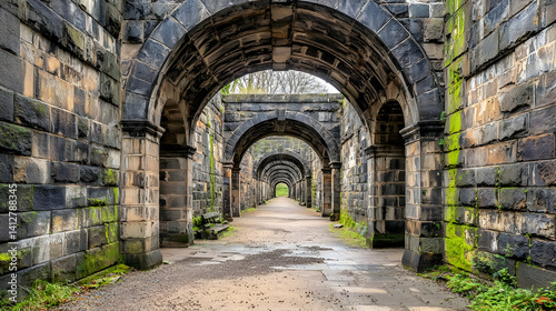Naklejka premium Ancient Stone Arch Tunnel Path