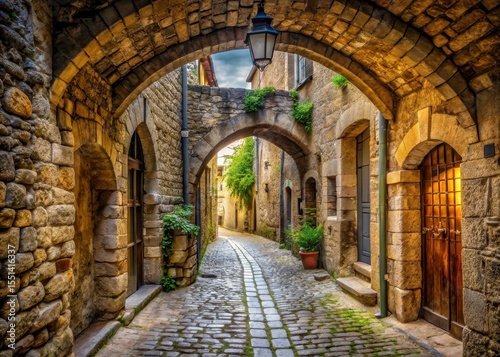 © ทองขาร พอใจ, Fototapeta premium Ancient stone arches over narrow cobblestone street