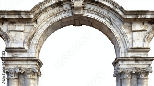 © Steven, Obraz premium Ancient stone archway with intricate carvings, showcasing classical architecture against a plain white background.
