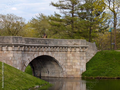 © Олег Коломиец, Obraz premium Ancient stone bridge in the park