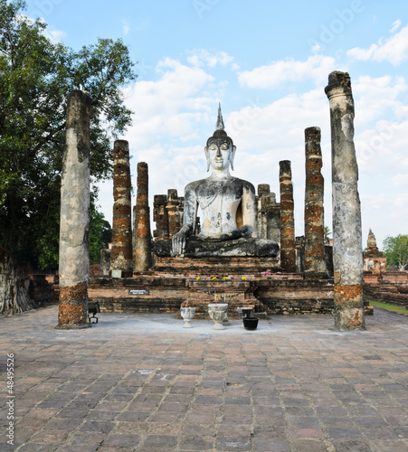 © boonsom, Obraz premium Ancient stone Buddha in Sukhothai Historical Park, Thailand