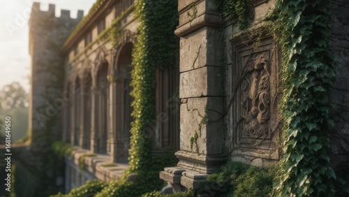 Obraz premium Ancient stone building overgrown with ivy