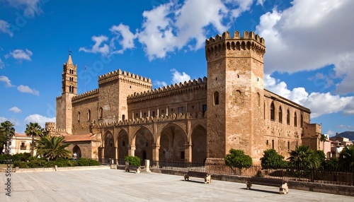Fototapeta premium Ancient stone building with arches and towers