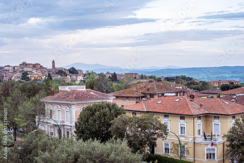 Obraz premium Ancient stone buildings nestled among lush greenery create a captivating landscape view, inviting exploration and travel to this historic city with rich cultural heritage