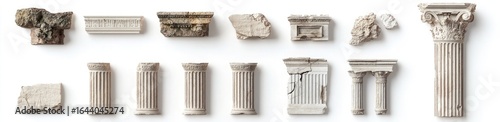 Obraz premium Ancient Stone Columns and Architectural Elements on a Clean White Backdrop...