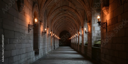 © BackgroundStudio, Fototapeta premium Ancient stone corridor illuminated by warm candlelight
