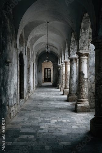 Fototapeta premium Ancient stone hallway, arched passage
