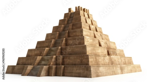 © sablengjago, Fototapeta premium Ancient stone pyramid with stairs leading to the top isolated on white background.