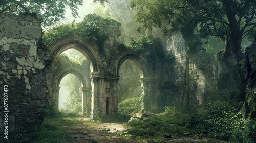 © BloomArt, Fototapeta premium Ancient stone ruins of a forgotten civilization overtaken by the lush forest