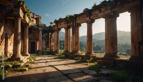 © yulia, Fototapeta premium Ancient Stone Ruins with Columns Against a Sunny Sky Landscape View