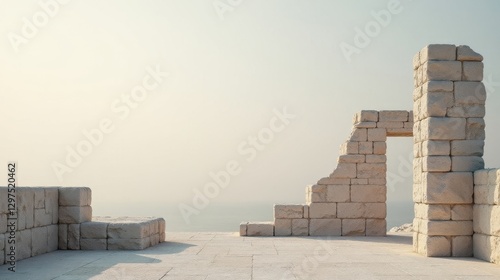 Fototapeta premium Ancient Stone Structure Overlooking Calm Waters A Serene Vista of...