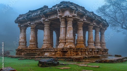 Obraz premium Ancient stone temple in misty landscape