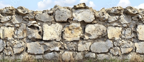 © Humaira, Obraz premium Ancient Stone Wall Under Cloudy Sky