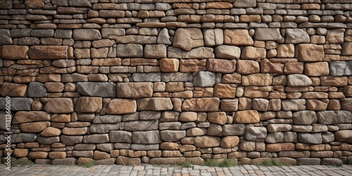 Obraz premium Ancient stone wall with weathered rock surfaced tiles, exterior, worn, natural