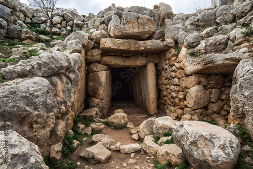 Naklejka premium Ancient subterranean dwelling with a stone gateway