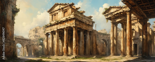 © RobinsonIcious, Obraz premium ancient temple architecture in oil painting style. High resolution illustration