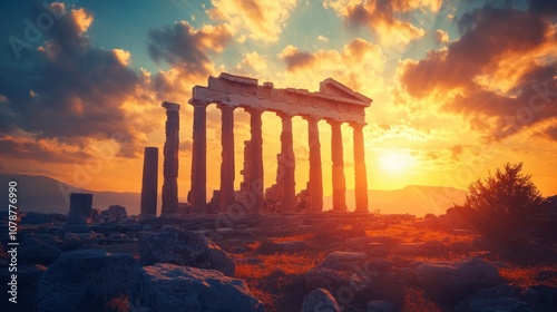 Naklejka premium Ancient Temple at Sunset