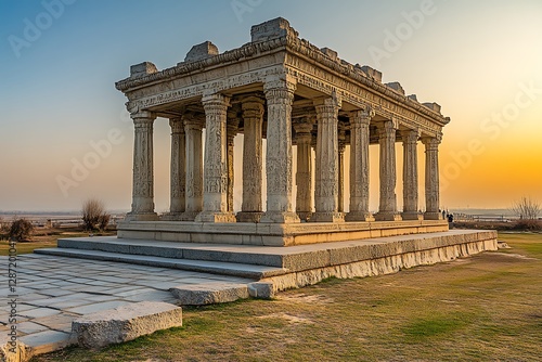 Obraz premium Ancient temple at sunset overlooking plains
