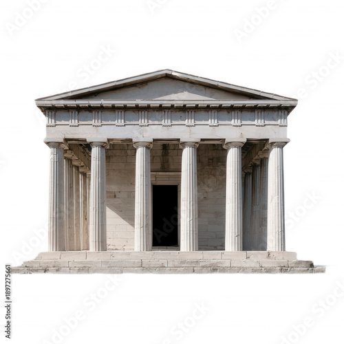 © heerim studio, Naklejka premium Ancient temple facade with classical columns and stonework.