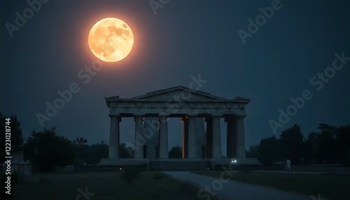 Obraz premium Ancient Temple Silhouetted Against A Large Orange Moon