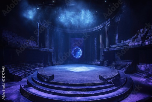 Fototapeta premium Ancient theater with a glowing portal at the center stage