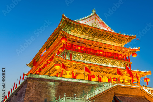 © hxdyl, Fototapeta premium ancient tower at dusk in xian city wall ,China