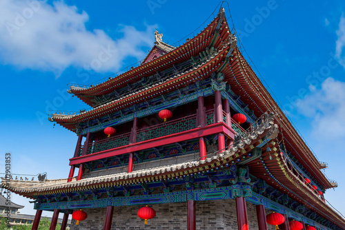 © hxdyl, Fototapeta premium ancient tower at dusk in xian city wall ,China
