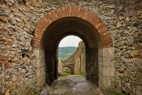 © tillottama, Fototapeta premium ancient Trencin Castle in Slovakia 11th century. A wall with an archway.