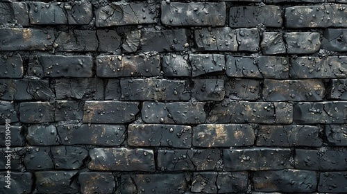 © Zahfran, Obraz premium Ancient wall background with soot-blackened, crumbling bricks