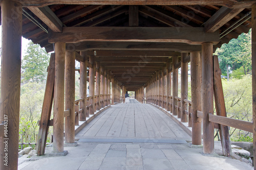 Fototapeta premium Ancient wooden bridge in a temple in Kyoto, Japan