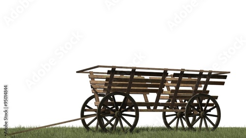 © sabida, Fototapeta premium Ancient wooden cart on grass surface - isolated on white background