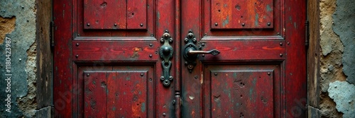 Fototapeta premium Ancient wooden door with scratches and worn surface, antique, worn finishes,...