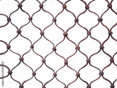 Naklejka premium Ancient wrought iron grating, fence for monastery windows, isolated on white...