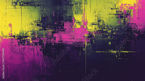 © Pattadon, Obraz premium And Cyber-Inspired Abstra Green Neon Purple Grunge Olive