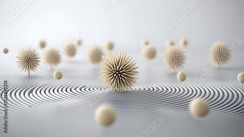 © thanarak, Fototapeta premium and dynamic image showcasing a ferrofluid sculpture with organic magnetic spikes and flowing shimmering metallic textures