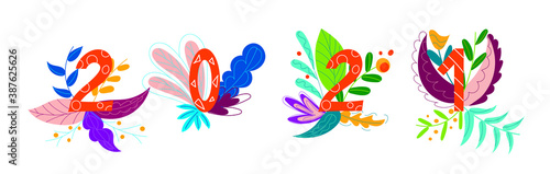 Obraz premium 2021 and floral print. Colorful vector illustration