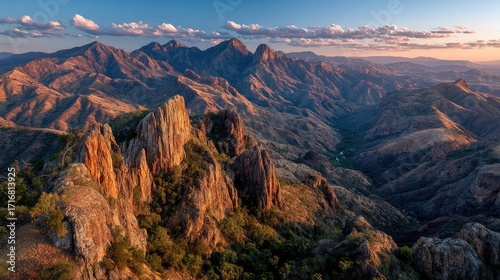 © Mahsya, Fototapeta premium and keyword list based on the imageMountains Standing Tall Under Golden Sunset Light in a Rural Wilderness