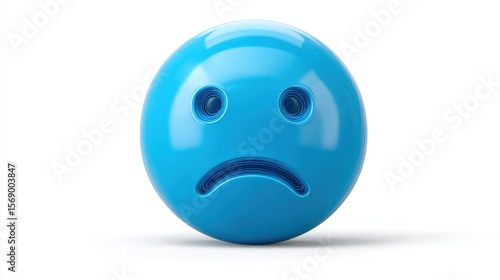 Fototapeta premium and keywords for the image3D rendering of a smooth, blue sphere representing a sad or unhappy facial expression
