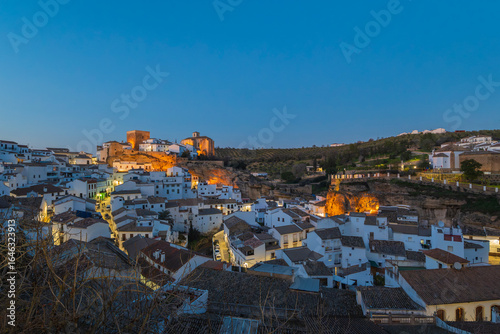 © Eduardo Frederiksen, Fototapeta premium Andalucian village with white houses built into rock at night
