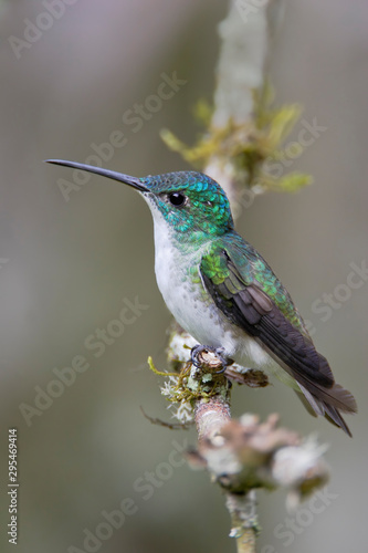 © Wilfred, Fototapeta premium Andean Emerald (Amazilia franciae) sitting on branch in Alambi cloud forest, Ecuador